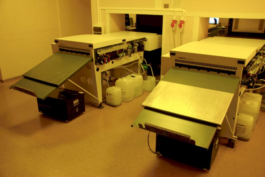Вывод пластин может осуществляться на двух производственных линиях, каждая из которых включает в себя устройство прямого экспонирования пластин от компании «ECRM» (США) и проявочный процессор «Raptor 68 HW Polymer» от «Glunz & Jensen» (Дания). Линии отличаются тем, что экспонирующее устройство на одной из них (основной) оснащено «Пин-ап» автоматической подачи пластин (модель «NewsMatic»), а на другой (резервной) подача пластин происходит вручную (модель «News»).