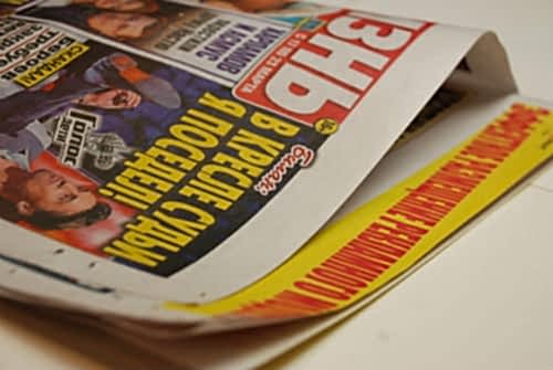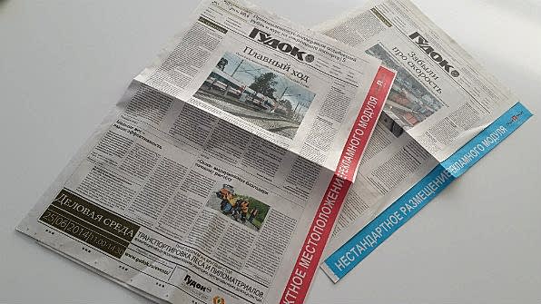 Образцы:Опция «УМНЫЙ КЛЕЙ»«Умный клей» Уникальное и эксклюзивное размещение рекламы на страницах газет. Свежее решение, разработанное специалистами нашей типографии позволяет раздвинуть привычные рамки предлагаемых типографиями услуг, «Пин-ап» варианты размещения рекламной информации без изменения редакционного контента. Приклеивание рекламного продукта на первую или последнюю полосы газет формата TABLOID, либо верхнюю или нижнюю часть первой полосы формата BROADSHEET(А2) При этом, средняя «Пин-ап» приклеивания рекламного продукта к газете составит до 30 000 экз./час Клей, которым приклеивается «Пин-ап» продукт является уникальным. Он настолько хорош, что мгновенно застывает в процессе приклеивания и вполне легко отделяется от газеты не причиняя газете даже малейшего вреда. Дополнительные возможности первой полосы: ∙Выгодное позиционирование рекламного продукта; ∙Разнообразный выбор приклеиваемого продукта; ∙Сохранение производственного графика Издания; ∙ Приклеивание во весь «Пин-ап» Издания; ∙Оптимальная стоимость. Примеры: