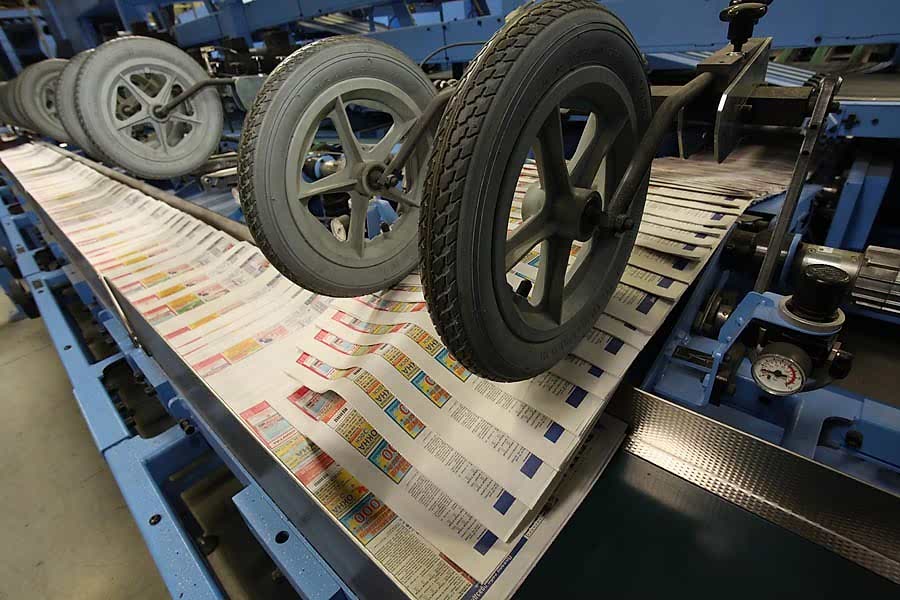 С помощью двух линий трехсторонней обрезки «Пин-ап» можно обрезать газеты и непосредственно с печатной машины, и продукцию, предварительно прошедшую обработку на вкладочной линии «ProLiner».